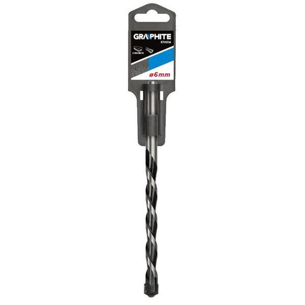 GRAPHITE hengeres szárú betonfúró lepkeszárny alakú vídiabetéttel. Így fúráskor betonban, kerámiákban nem kell tartani a fúróhegy elcsúszásától a fúrás kezdeti szakaszában.