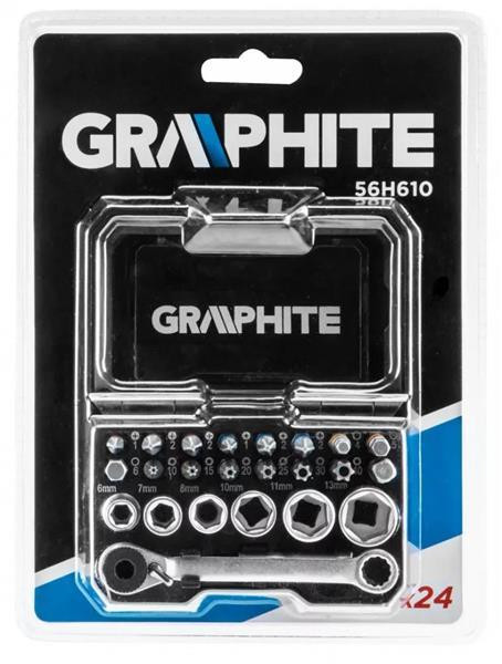 GRAPHITE Bit készlet+dugókulcs tartóban 56H610 24 db
