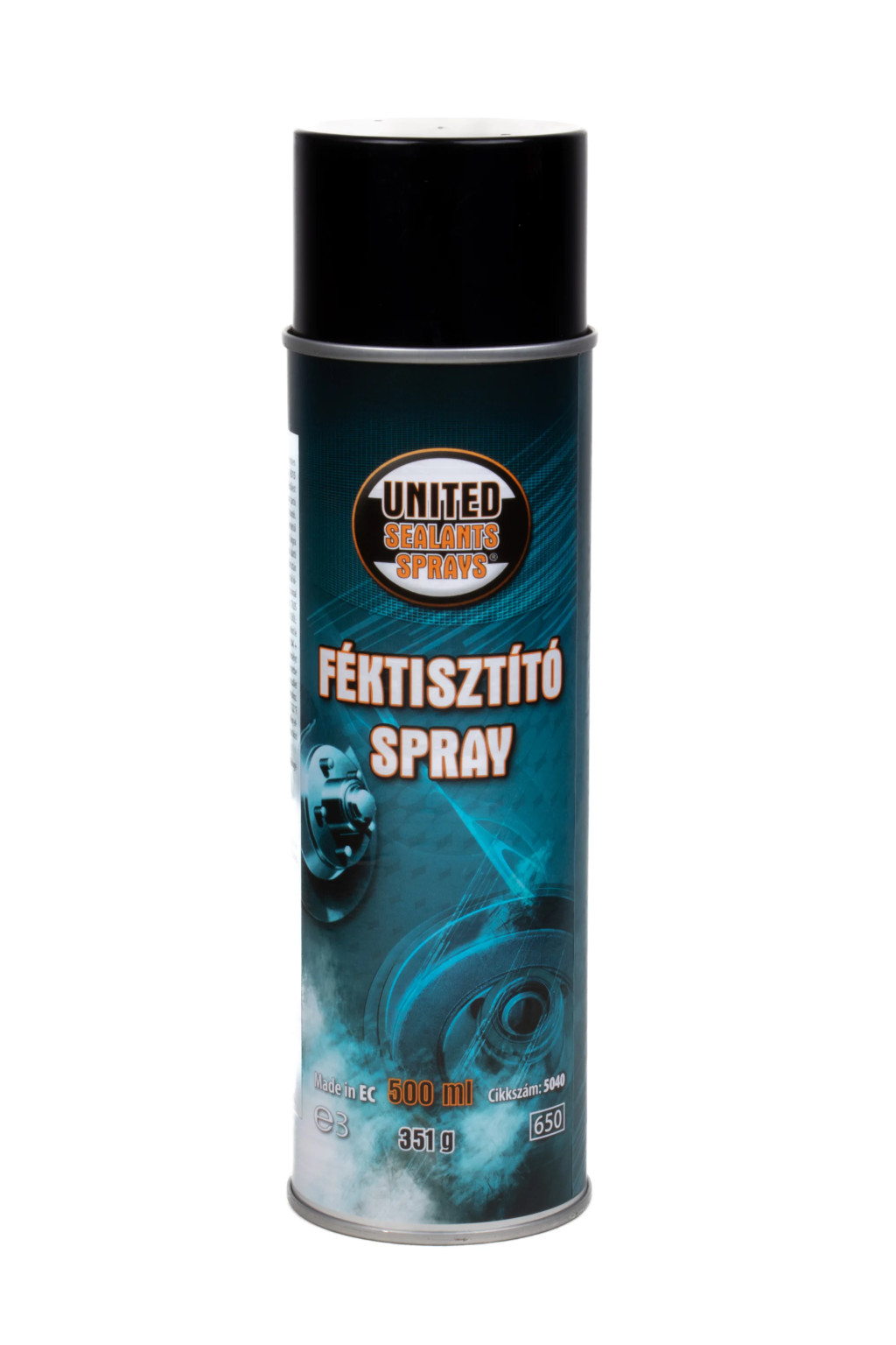 A United Sprays Féktisztító spray egy magasan aktív, gyorsan párolgó, speciális tisztító, és zsírtalanító, különleges benzinfajták bázisával. Befújása után magától, és gyorsan eltávolítja az olajat, zsírt, viaszt, fékport és egyéb szennyeződések bármilyen fajtáját. Maradék nélkül zsírtalanítja a fémeket, üveget és kerámiát a szilikontól, olajmaradványtól, gyantától és ragasztótól. A féktisztító spray nem korrodál, nem támadja meg a gumi és műanyag alkatrészeket (mindenesetre egy saját teszt elvégzése ajánlott). A citromos illatú változat elősegíti a zárt helyen történő alkalmazást, az illatanyag bekeverése semmiképpen sem befolyásolja a kiváló zsírtalanító hatást.Ez a termék pl. fék, kuplung, és váltóalkatrészek zsírtalanítására is felhasználható. Problémamentesen eltávolítja a begyantásodott kenőanyagot a zsanérokról és csuklókról is. Dob és tárcsafékek, fékbetétek, féktuskók, valamint kuplung alkatrészek gyors tisztítására is alkalmas. A féktisztító megtisztítja a kontaktusokat, pl. az elosztókban, a motor elektromos csatlakozóiban, a porlasztókban, olaj és benzin-pumpákban.