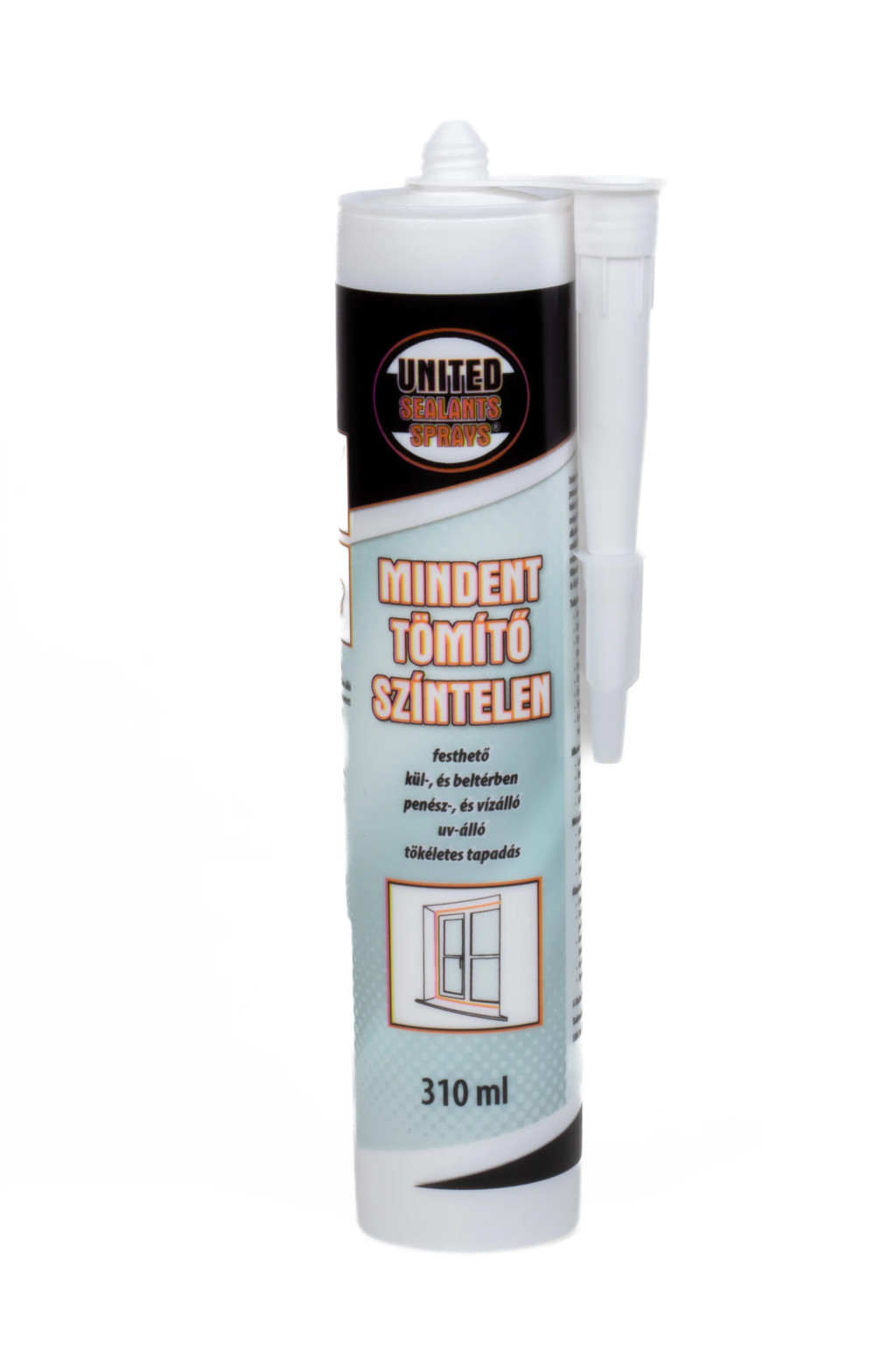 United Sealants Mindent tömítő színtelen egy kiváló minőségű, egykomponensű kopolimer tömítőanyag, mely fungicid tartalmú (penészálló), fehér színű, de kikeményedés során színtelen színre köt. Nagy teljesítményű tömítőanyag általános használatra. Tömítésre és ragasztásra alkalmas alumínium, üveg, csempe és szaniter munkák esetében. Nem oxidáló fém, beton, falazat, fa, kövek, kerámia, üveg, PVC alapfelületek esetében. Kiválóan tapad a legtöbb felületre, nincs szükség alapozóra. Kikeményedés után rugalmas és ellenálló tömítéssé alakul át. Kiváló UV-, és időjárás-állóság jellemzi.