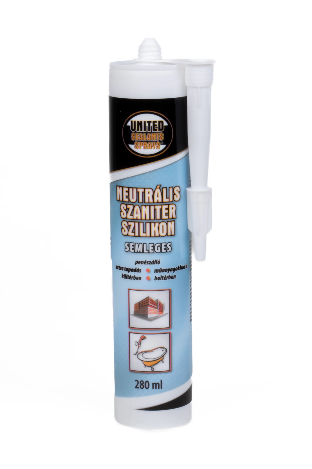 A United Sealants Neutrális szaniter szilikon (semleges) egy kiváló minőségű, semleges (oxim), egykomponensű, szilikon bázisú fugatömítő, amely fungicid tartalmú egyben.United Sealants Neutrális szaniter szilikon egy kiváló minőségű, ecetsavmentes (semleges), egy komponenses szilikon tömítőanyag. Tulajdonságai: könnyű alkalmazhatóság, szín tartó, UV-álló, gomba-, és penészálló (fungicid tartalom), a kikeményedés után rugalmas marad, nagyon jó és tartós tapadás sok fajta alapfelülethez, szinte szagtalan.